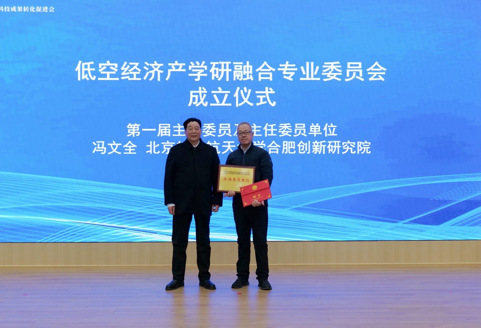 在全体与会嘉宾的见证下,低空经济产学研融合专业委员会正式揭牌成立。冯文全院长受聘担任专委会主任委员,并在致辞中表示,将依托北京航空航天大学的学科优势、人才储备与技术积淀,以我院现有科研平台和能力为基石,有效联动各成员单位,以“逢山开路、遇水架桥”的实干精神,将专委会建设成为 “有活力、有贡献、有影响力” 的协同创新共同体。