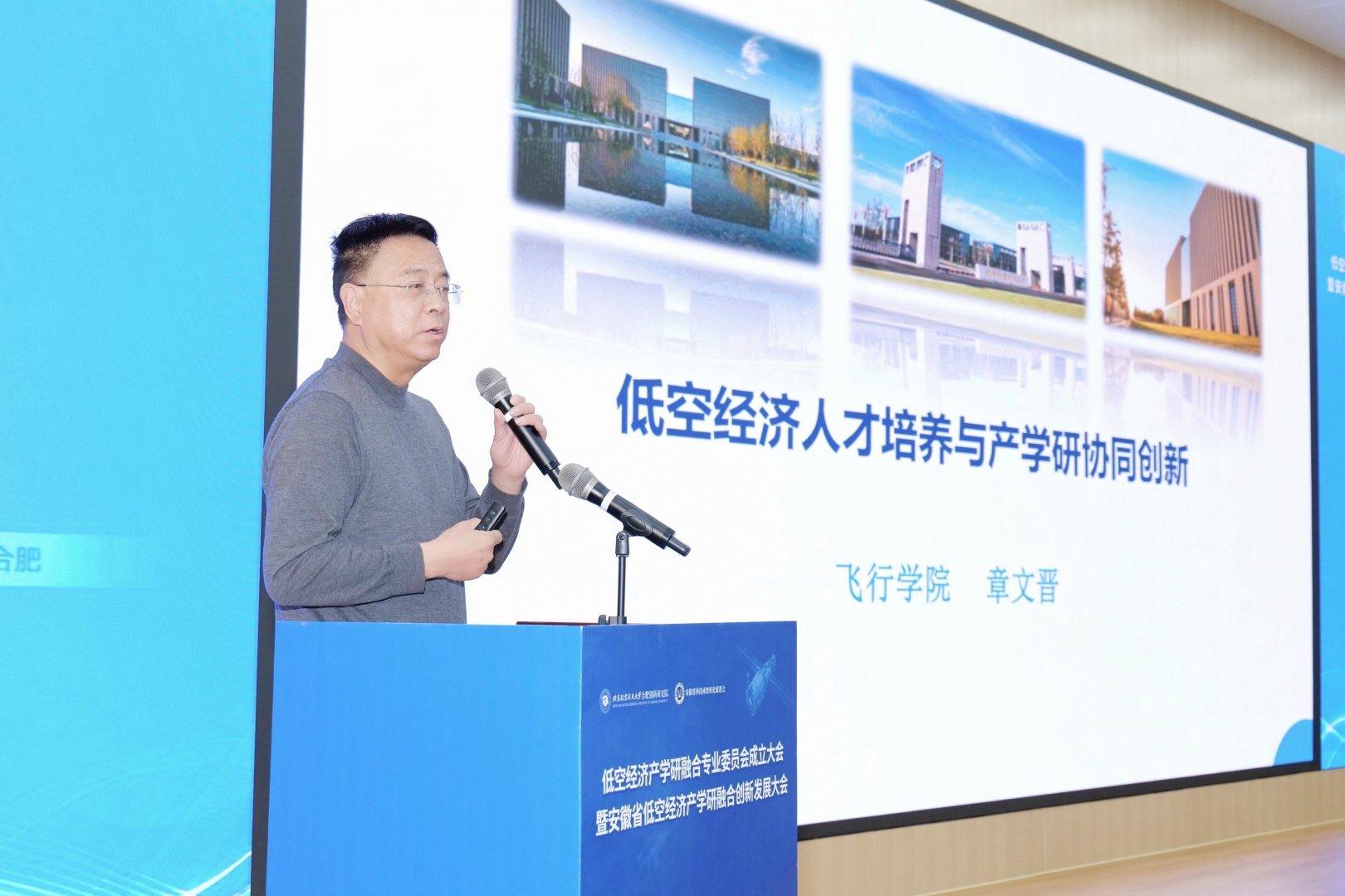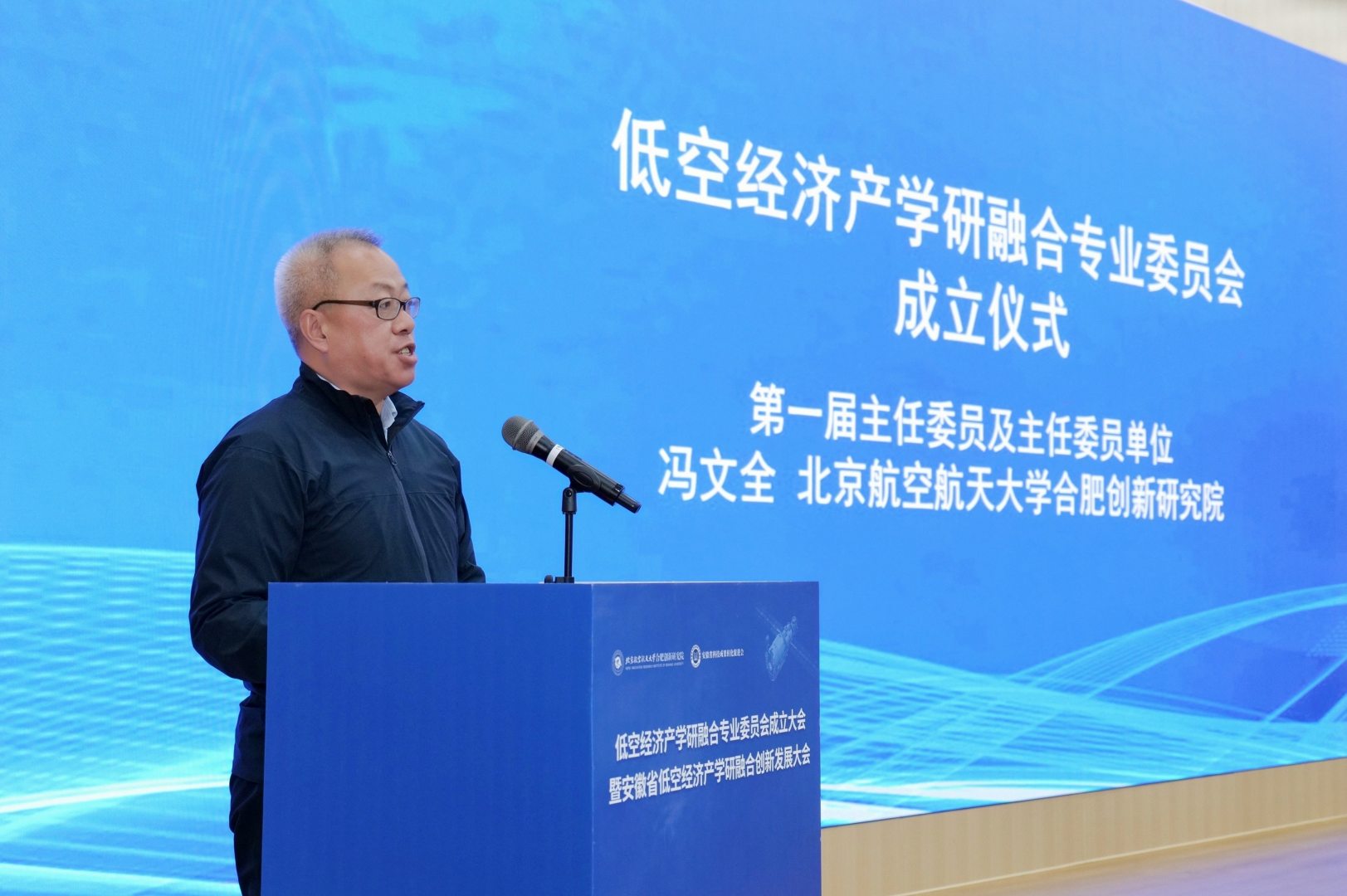 大会上,研究院院长冯文全发表致辞。他指出,研究院自落地合肥以来,始终聚焦国家战略与地方产业需求,在空天技术、电磁兼容、集成电路、无人驾驶等领域持续深耕。低空经济作为航空技术与区域经济融合的重要方向,已成为研究院新时期服务地方发展的关键着力点。专委会的成立,是整合高校科研力量、对接企业创新需求、推动科技成果就地转化的重要机制创新,研究院将全力支持专委会工作,共同打造具有安徽特色的低空经济产学研融合范式。同时,空天技术创新中心执行主任杨丁系统梳理了专委会的筹备历程,并对其职能定位与发展规划进行了详细阐述,展现了团队在专委会顶层设计与落地运营全过程中的主导作用与专业能力。