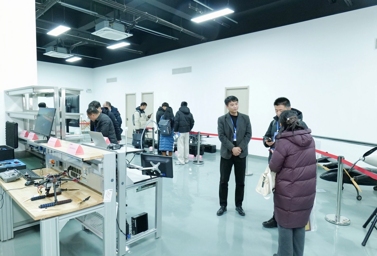 大会结束后,与会嘉宾移步我院“低空产教联合实验室”进行实地参观。嘉宾们现场观摩了研究院与各合作单位的最新研发成果与技术演示,亲身感受了其在低空经济核心领域的技术积累与协同创新能力。此次参观展现了我院作为区域低空经济领域关键技术策源地与产业应用示范平台的雄厚硬件实力与活跃创新生态,进一步强化了各参与方对未来深入合作的信心。